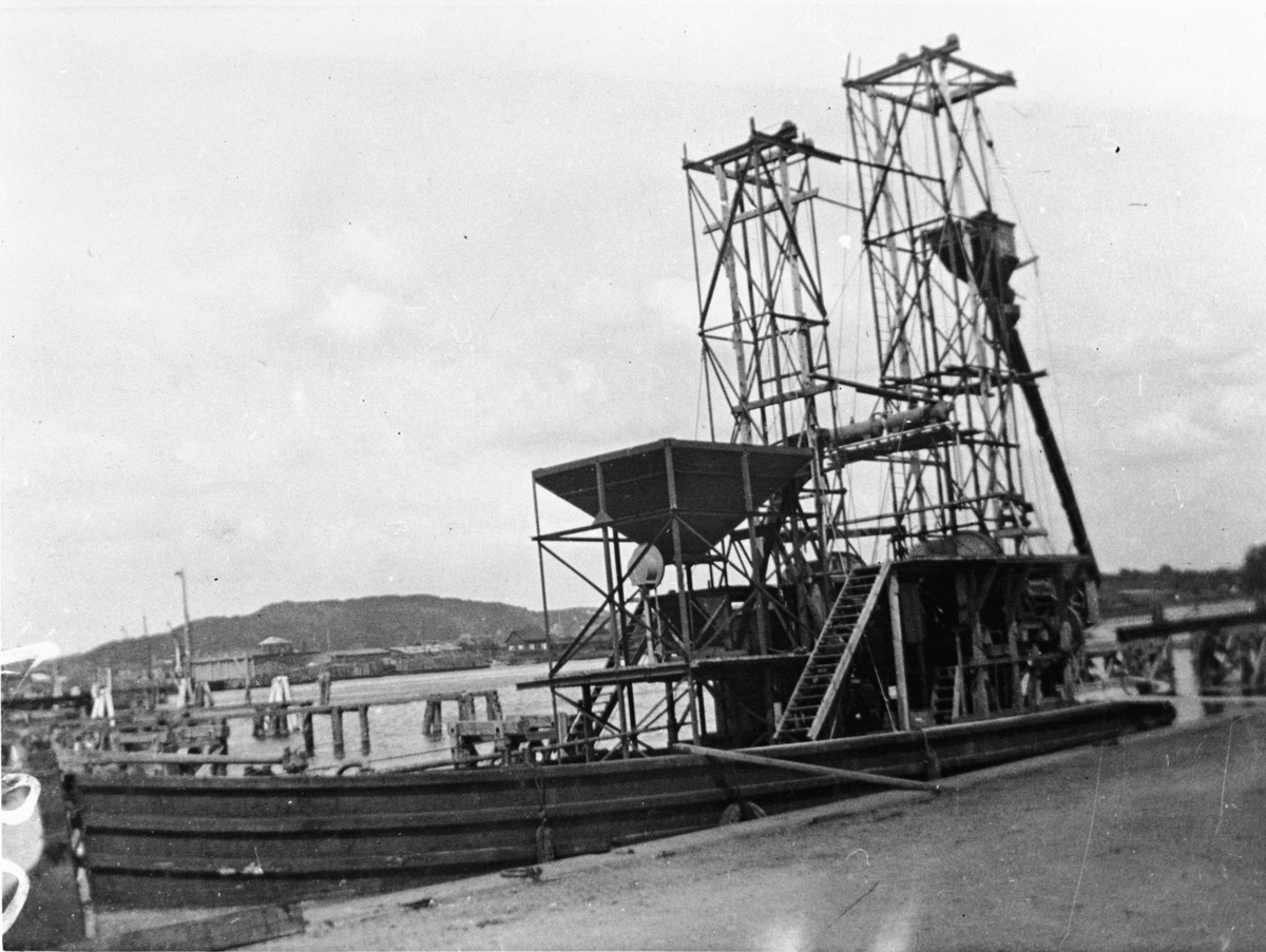 Titel: Byggherre: Byggnadsaktiebolaget Contractor, Stockholm. Götaälvsbron. Gjutning av kassun i torrdocka vid Trollhättan.