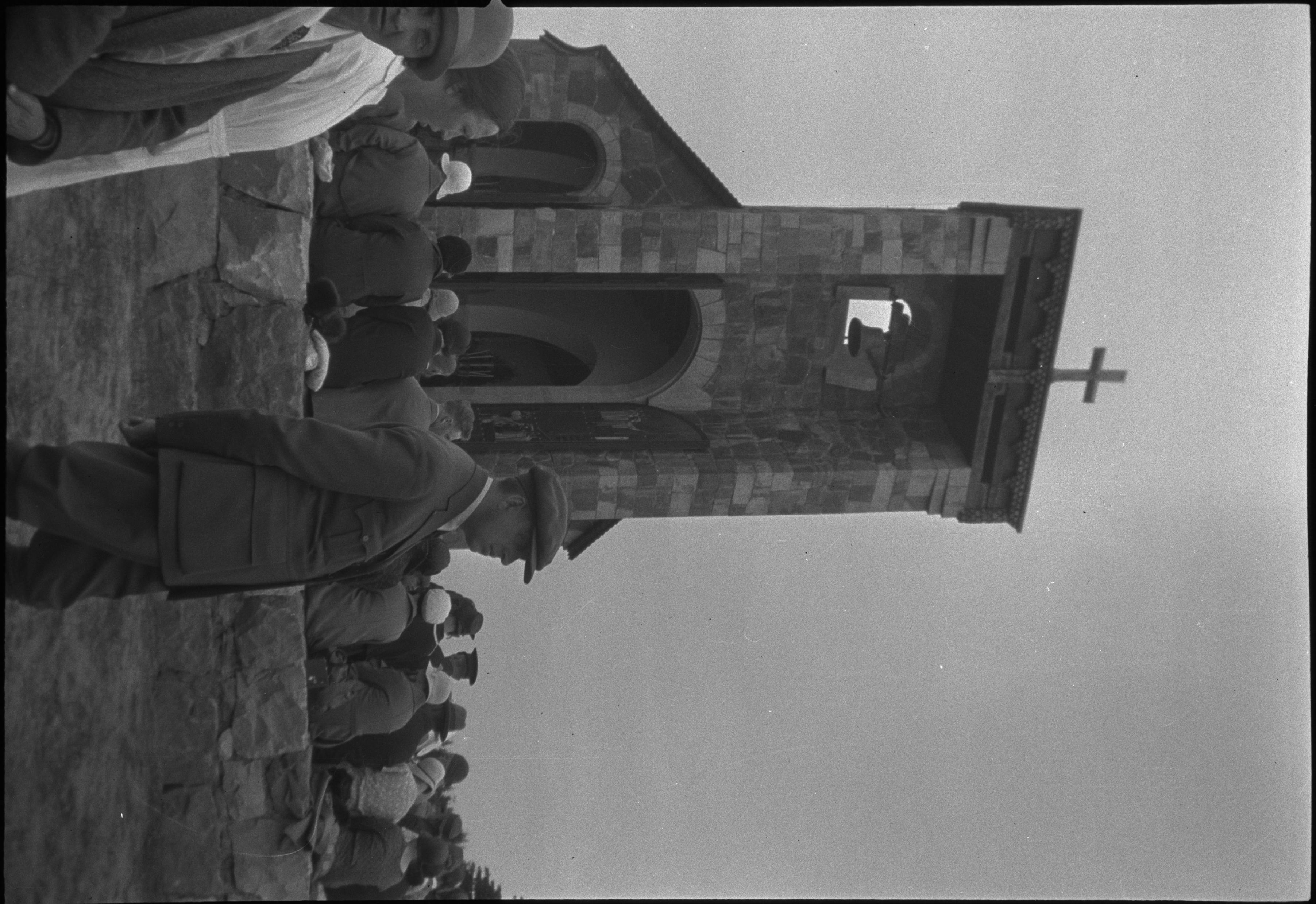 Beskrivning: "Ansgarskapellet på avstånd med stor folkmassa under gudstjänst"