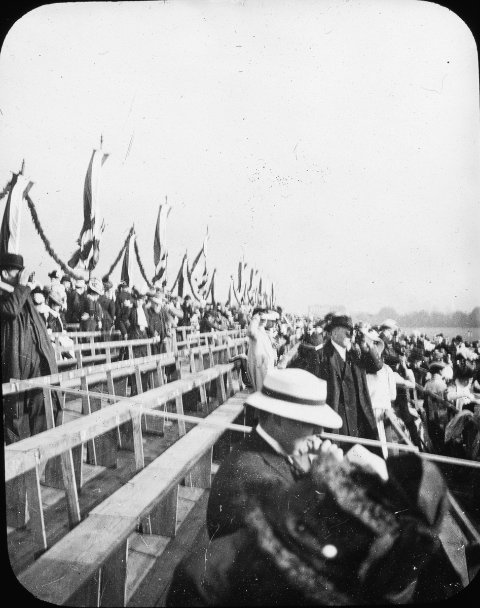 Skioptikonbild med motiv av åskåder vid Kaiser Wilhelm paraden, Berlin 1907.