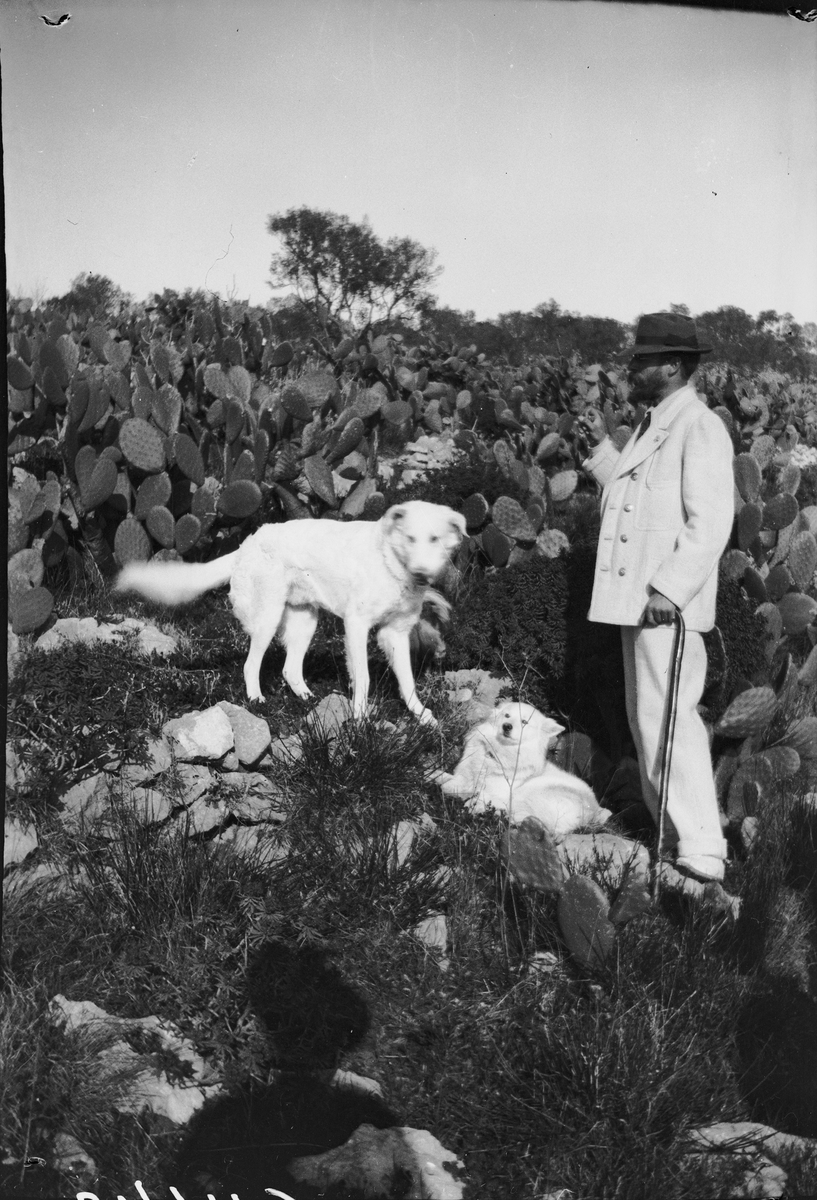 Drottning Victoria bilder. Man med hundar, Drottningens läkare Axel Munthe.