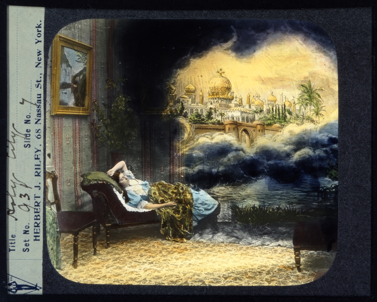 Ingått i bildserien "The Holy City". Kvinna sovande på divan, som drömmer om det heliga staden.