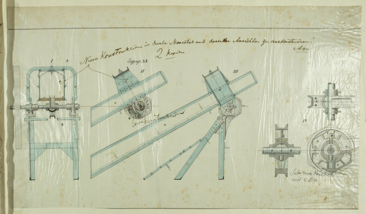 Skiss på tyska, ur boken med ritningar mm 1868-1887, av den svenske torvmaskinkonstruktören Aleph Anrep.