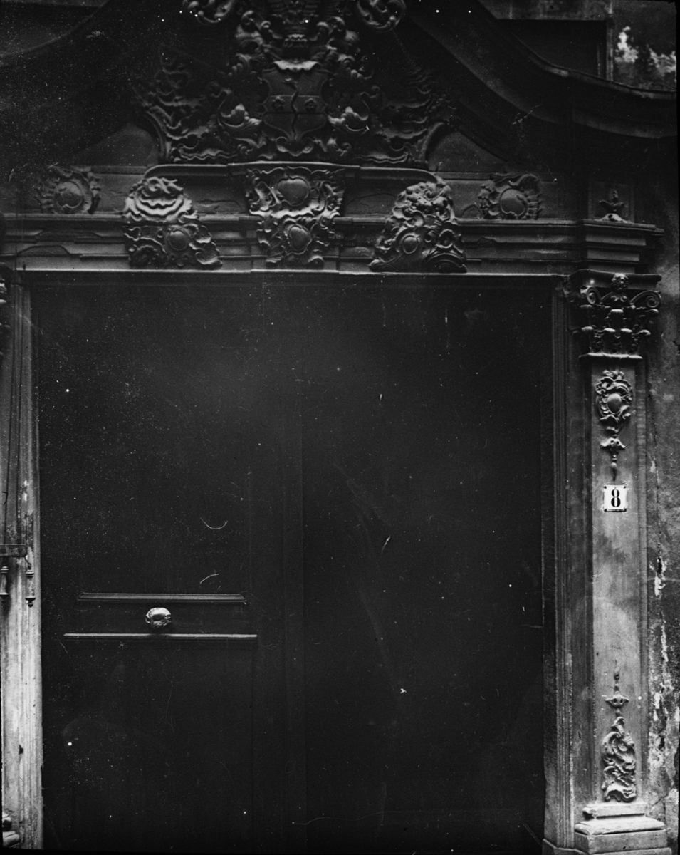 Skioptikonbild med motiv av port till okänt hus i Schwäbische Hall.