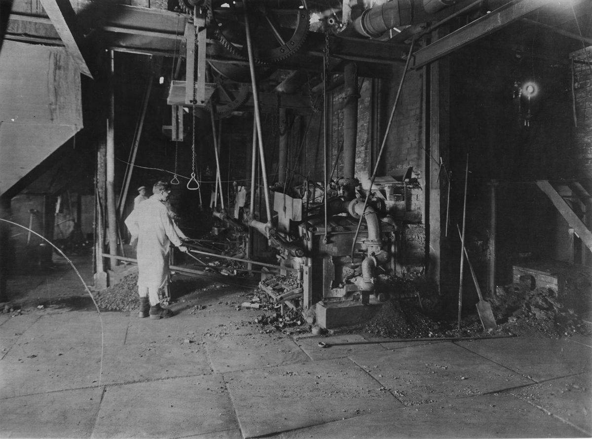 Interiö av smältsmedjan. Lancashirehärd. Boxholms bruk.