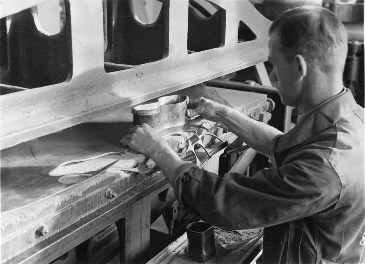 Svenska Skoindustri AB i Örebro. Sulor, bindsulor och kappor stansas ur de starkaste partierna av huden.