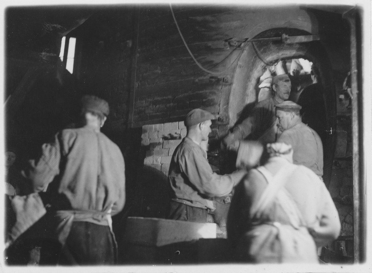 Tömning av rågodsugn vid Rörstrands Porslinsfabriker.