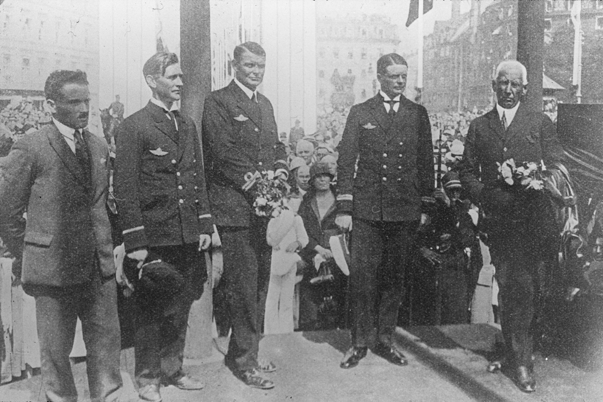 Skioptikonbild med motiv av flygare med mössan i hand och blommor.