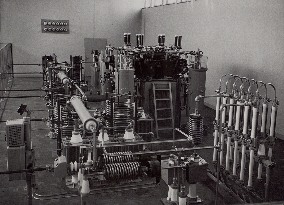 Hörby. Överblick över sändarsalen med den konstgjorda antennen för sändarens provande.