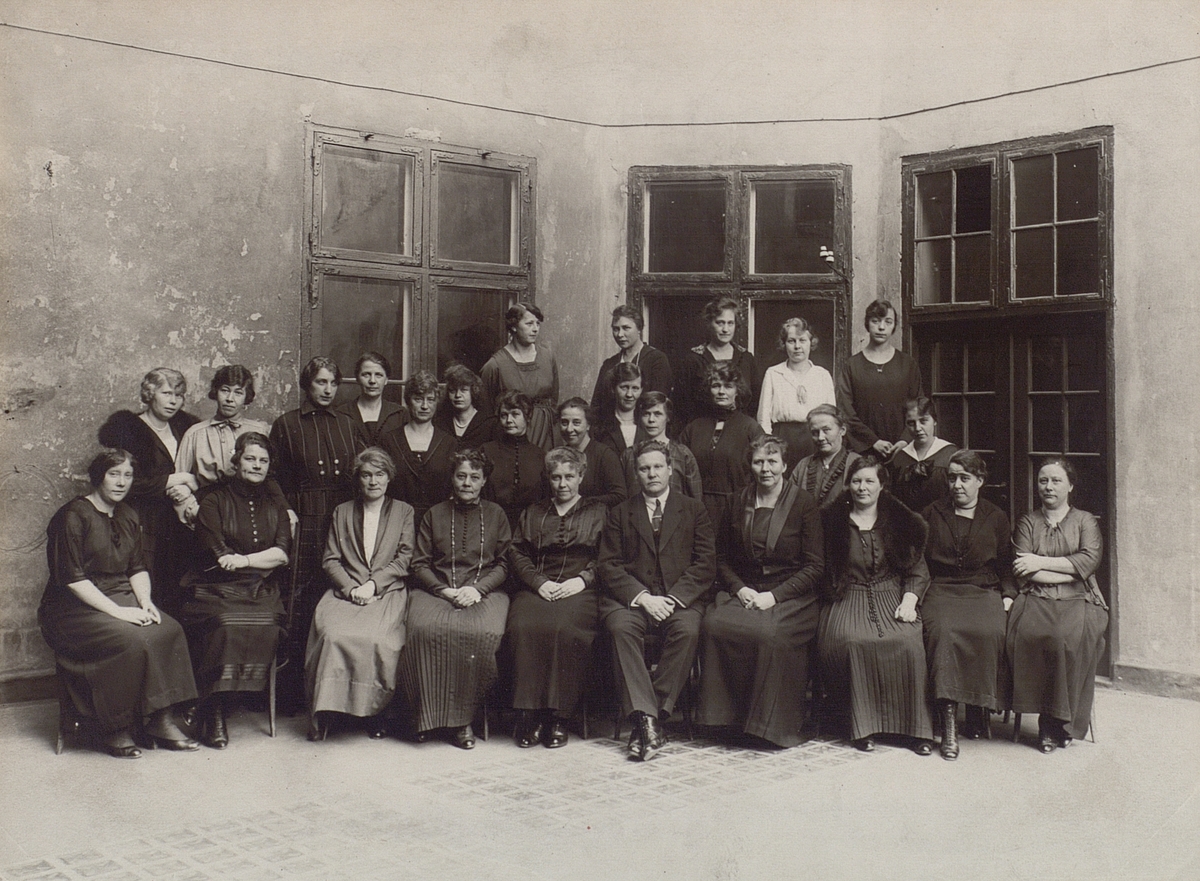 Skeppsbron 2. Vaktföreståndare och kanslipersonal vid telefonstationen. 1923.