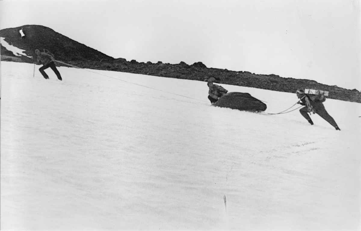 "Seismisk reflektionsmätning" på Kebnekaise storglaciär i juli-augusti 1949.