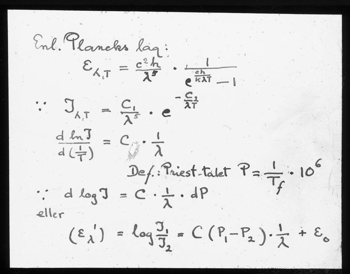 Uträkning enligt Plancks strålningslag. Fysikalisk lag som beskriver energistrålningen från en svart kropp, ideal och perfekt strålande kropp som saknar reflexionsförmåga och därför absorberar allt ljus.