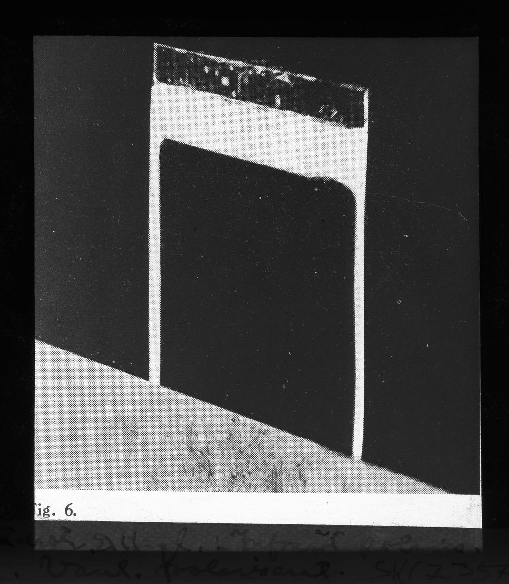 Skioptikonbild från Institutionen för fotografi vid Kungliga Tekniska Högskolan. Använd av professor Helmer Bäckström som föreläsningsmaterial. Bäckström var Sveriges första professor i fotografi vid Kungliga Tekniska Högskolan i Stockholm 1948-1958.
