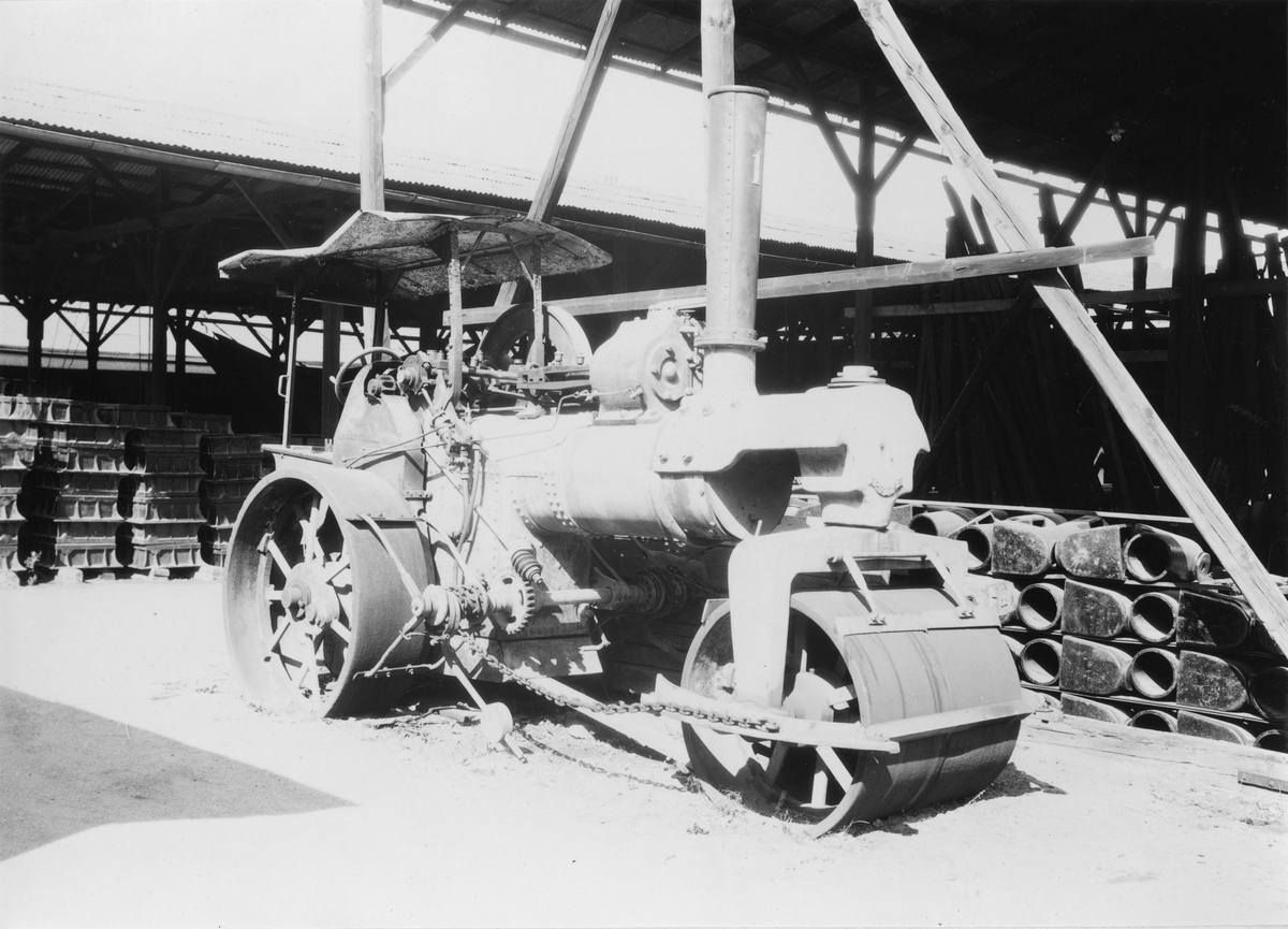 Stockholm Stads Gatukontors första ångvält. Typ "Inviata" GB 222 "No. 1". Maskinen erbjöds Tekniska Museet i augusti 1936.