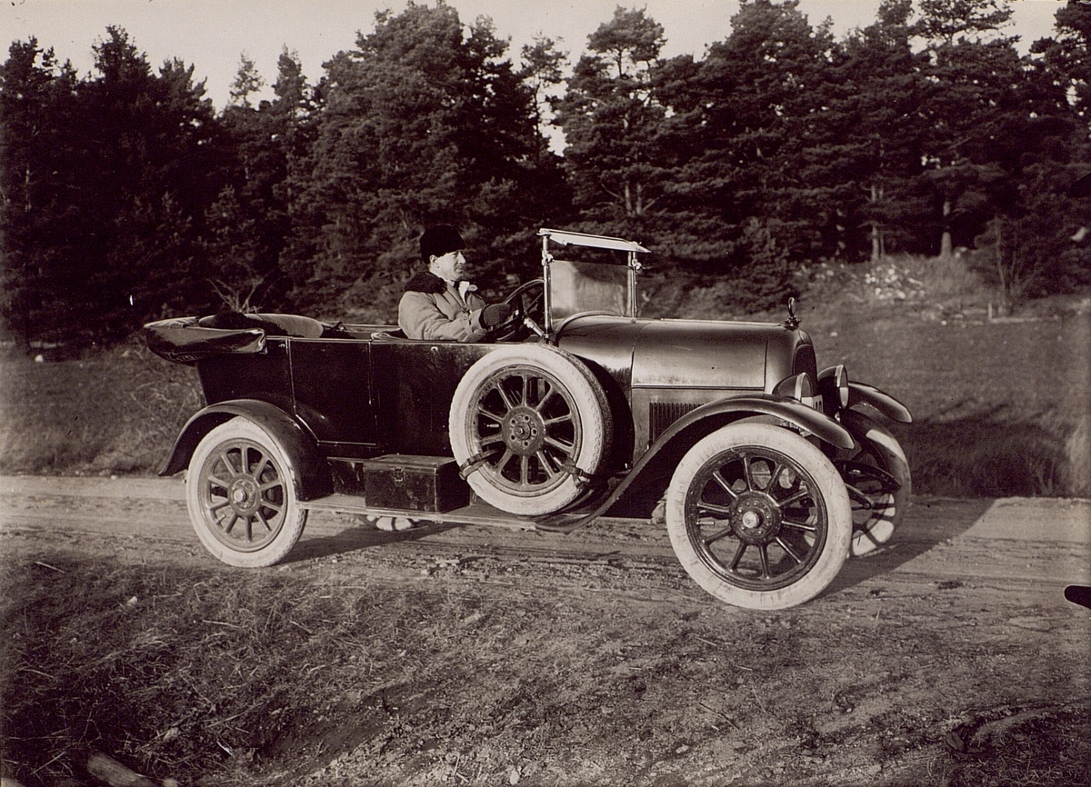Förste kontrollör Goldschmidt i tjänstebilen omkr. 1925. (Fiat 501, tillverkad 1919-1926).