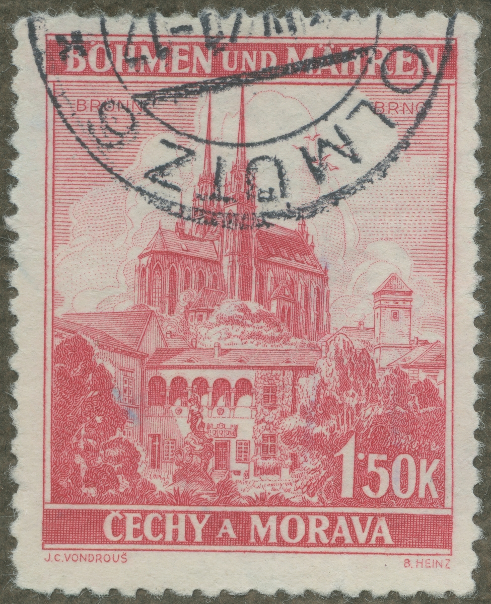 Frimärke från Böhmen och Mähren, 1939. Motiv av Katedralen i Brno.