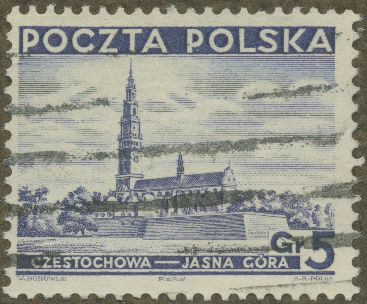Frimärke från Polen, 1937. Motiv av kyrkan och klostret Jasna Góra i Czestochowa.