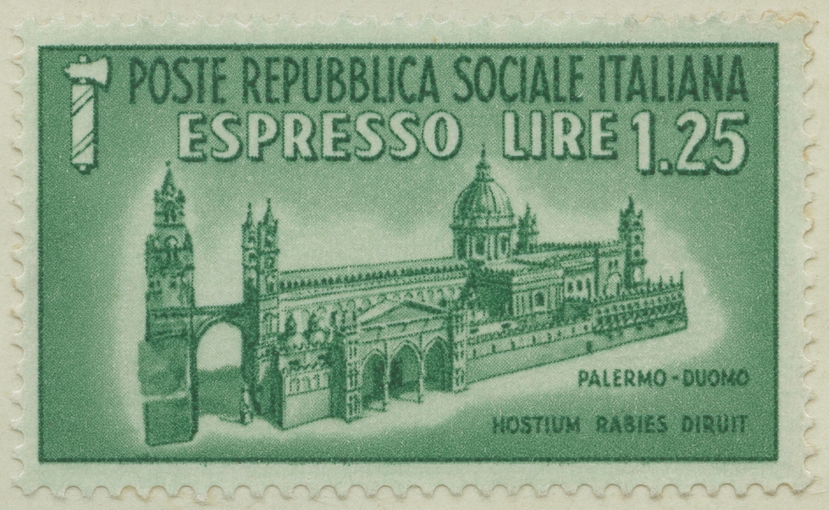 Frimärke från Italien, 1944. Expr. Motiv av Domen i Palermo.