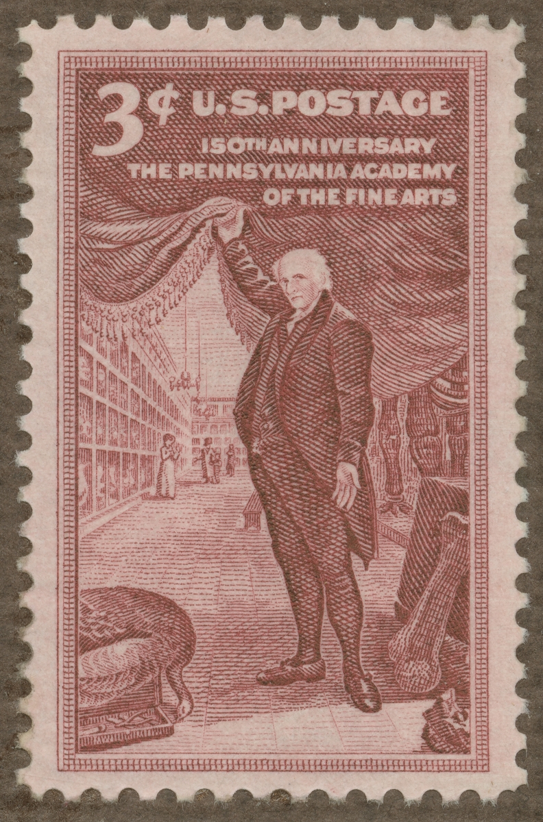 Frimärke från USA, 1955. Motiv av museimonter. "100-årsminne av Pennsylvaniaakademien för de sköna konsterna".