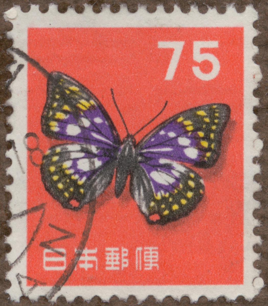 Frimärke från Japan, 1956. Motiv av Stor Violett Fjäril