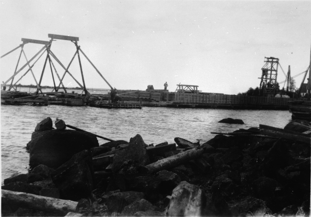 Byggherre: Byggnadsaktiebolaget Contractor, Stockholm. Den 200 m långa och 13,5 m breda pirbyggnaden i Vallvik för Marmaverken var imponerande också med avseende på det stora vattendjupet (10 m).