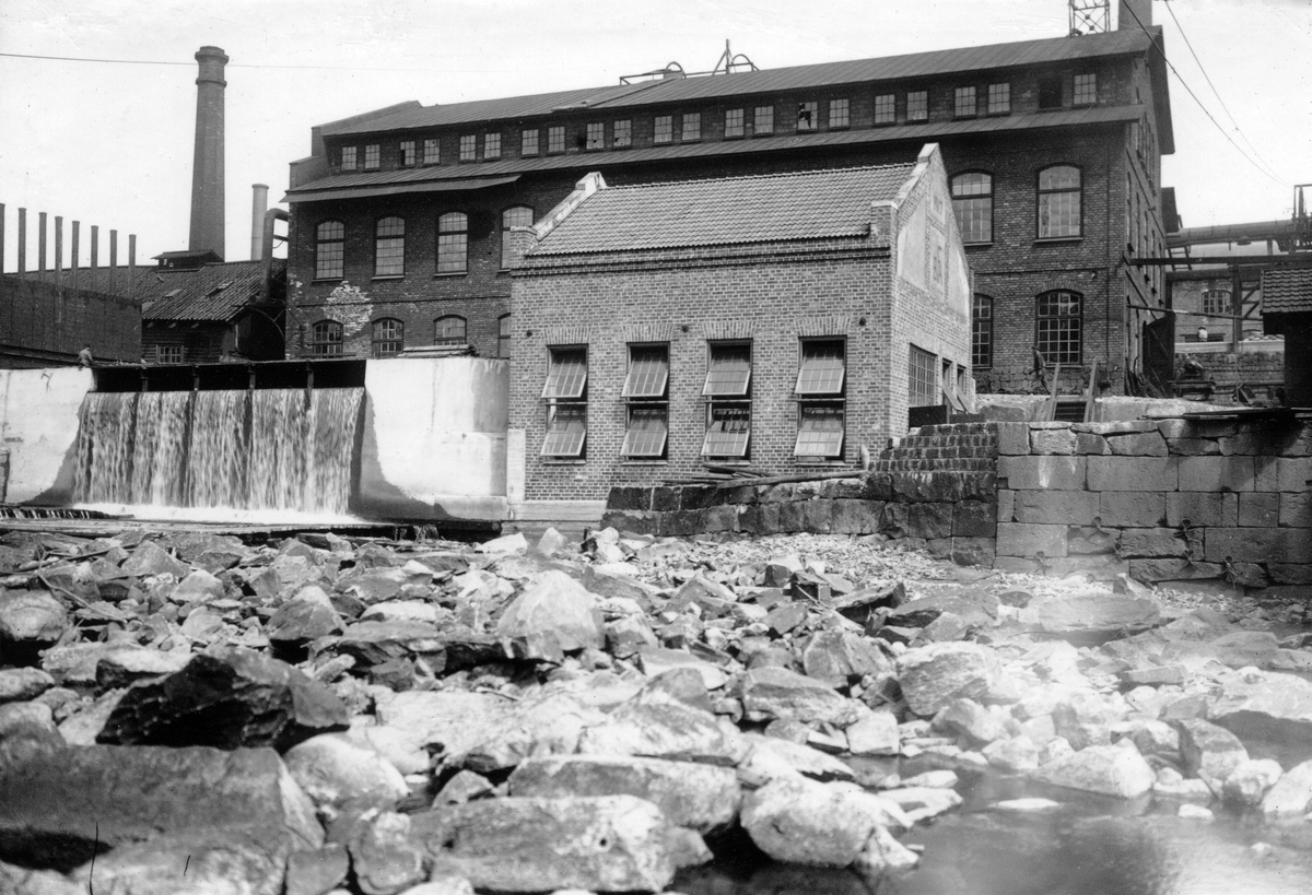 Fagersta kraftstation, med mekaniska verkstaden i Fagersta i bakgrunden.