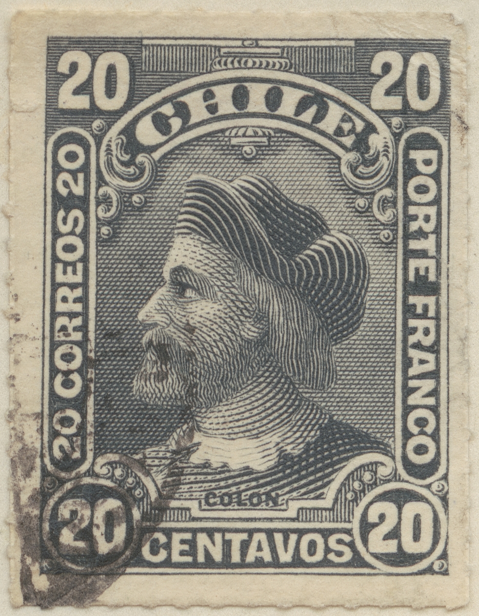 Frimärke från Chile, 1900. Motiv av Christopher Columbus 1446-1506 -1492: första resan över Atlanten-