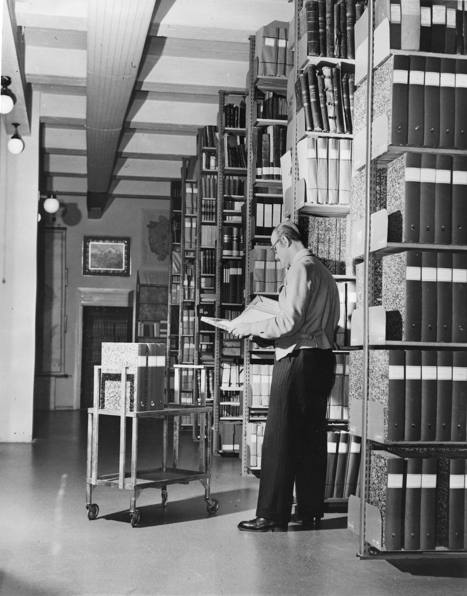 Torsten Althin i Tekniska museets arkiv den 17 oktober 1950.