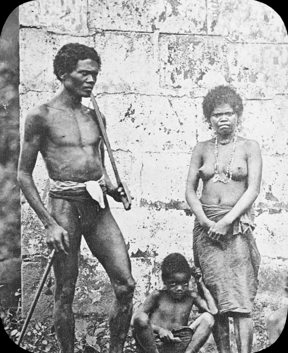 Skioptikonbild. Porträtt av afrikansk kvinna, man och barn.