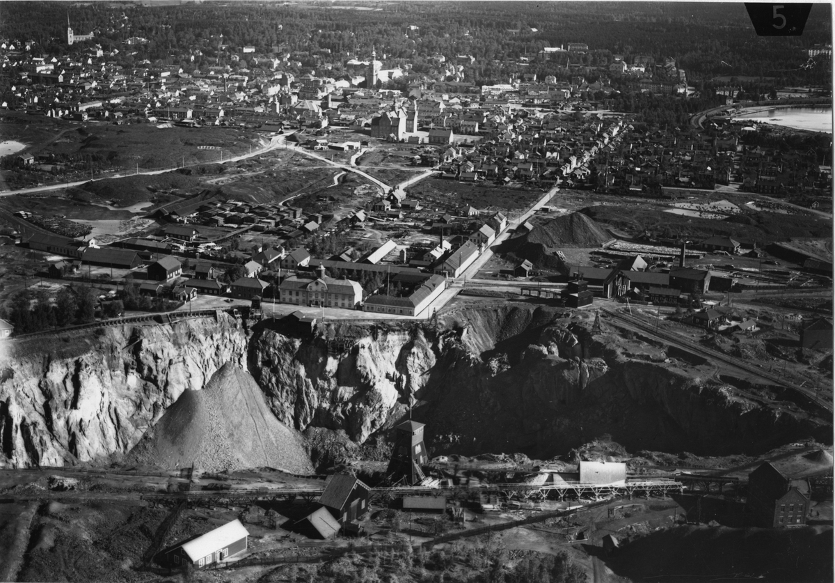 Vy över Falun med gruvan och Stöten.