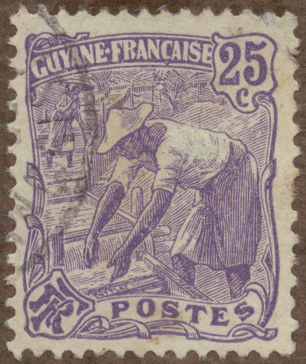 Frimärke från Franska Guayana, 1922. Motiv av Guldvaskning