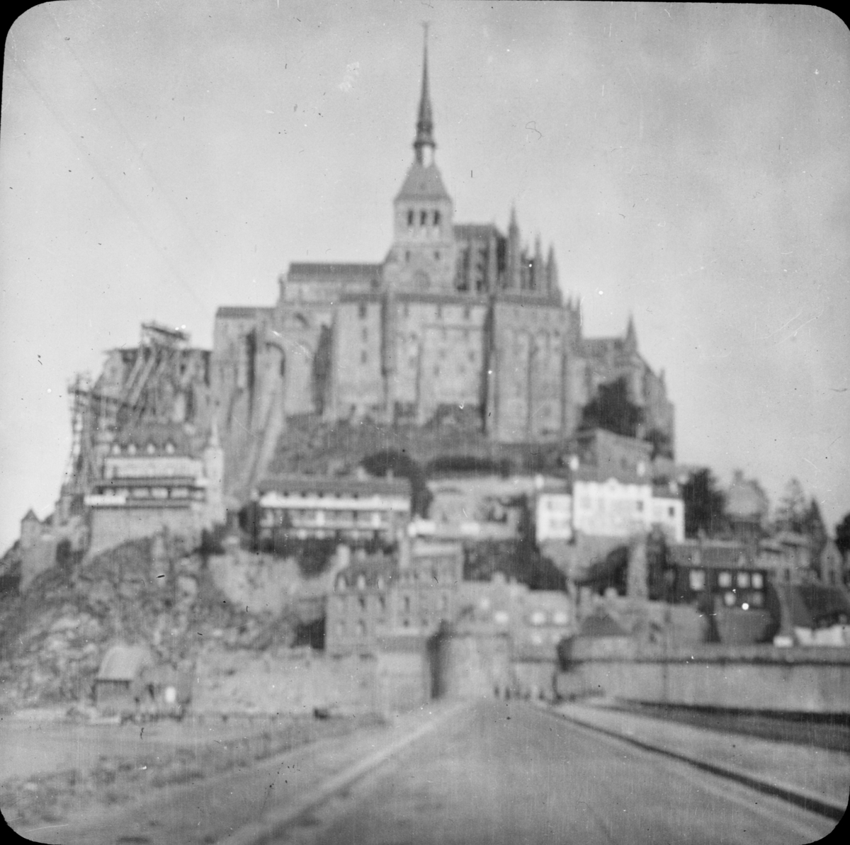 Skioptikonbild med motiv av Mont-Saint-Michel.