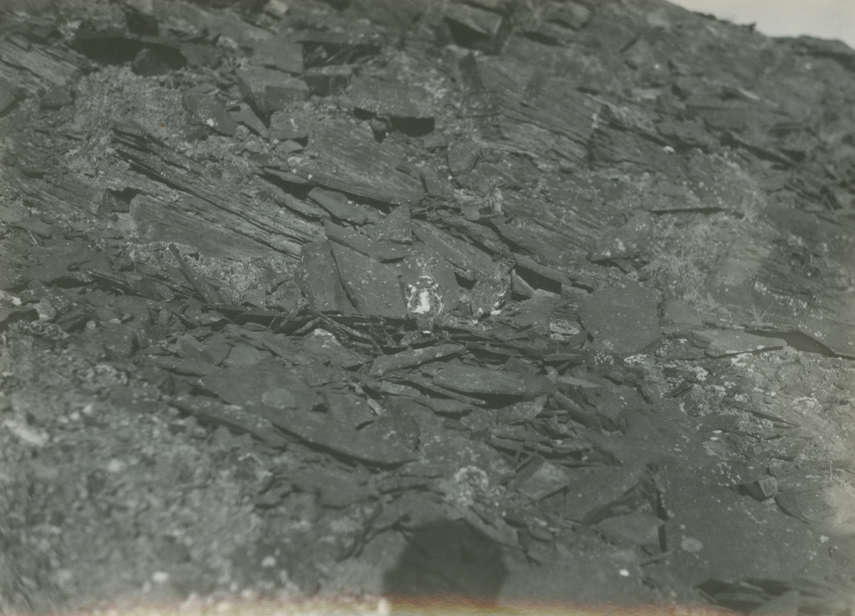 Fotografi från expedition till Östgrönland 1929. Dansk-svensk expedition under ledning av Lauge Koch. Svenska deltagare: Oscar Kulling och Helge Backlund. Närbild av berg.
