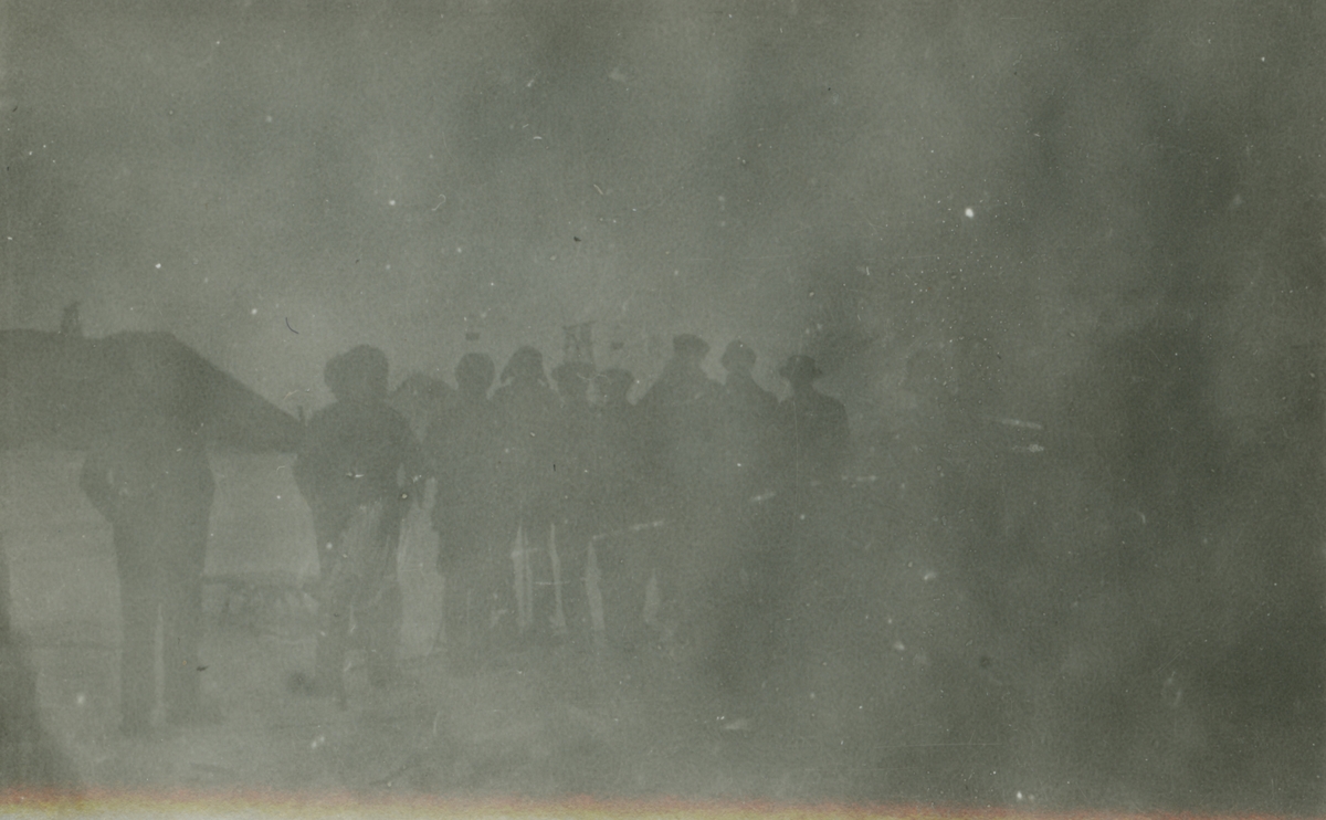 Fotografi från expedition till Spetsbergen. Motiv av en grupp människor som samlats utomhus.