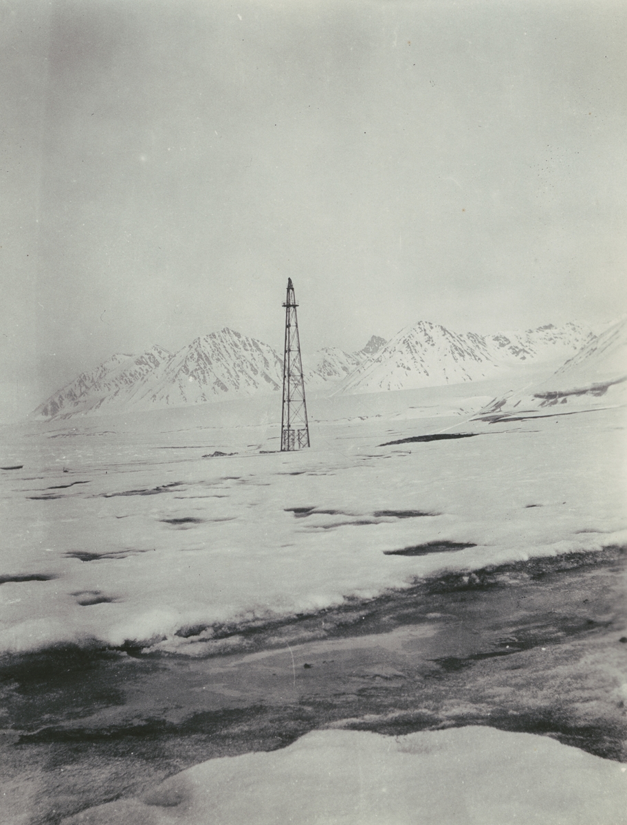 Fotografi från svenska undsättningsexpeditionen 1928. Motiv av förtöjningsmast i King's Bay.