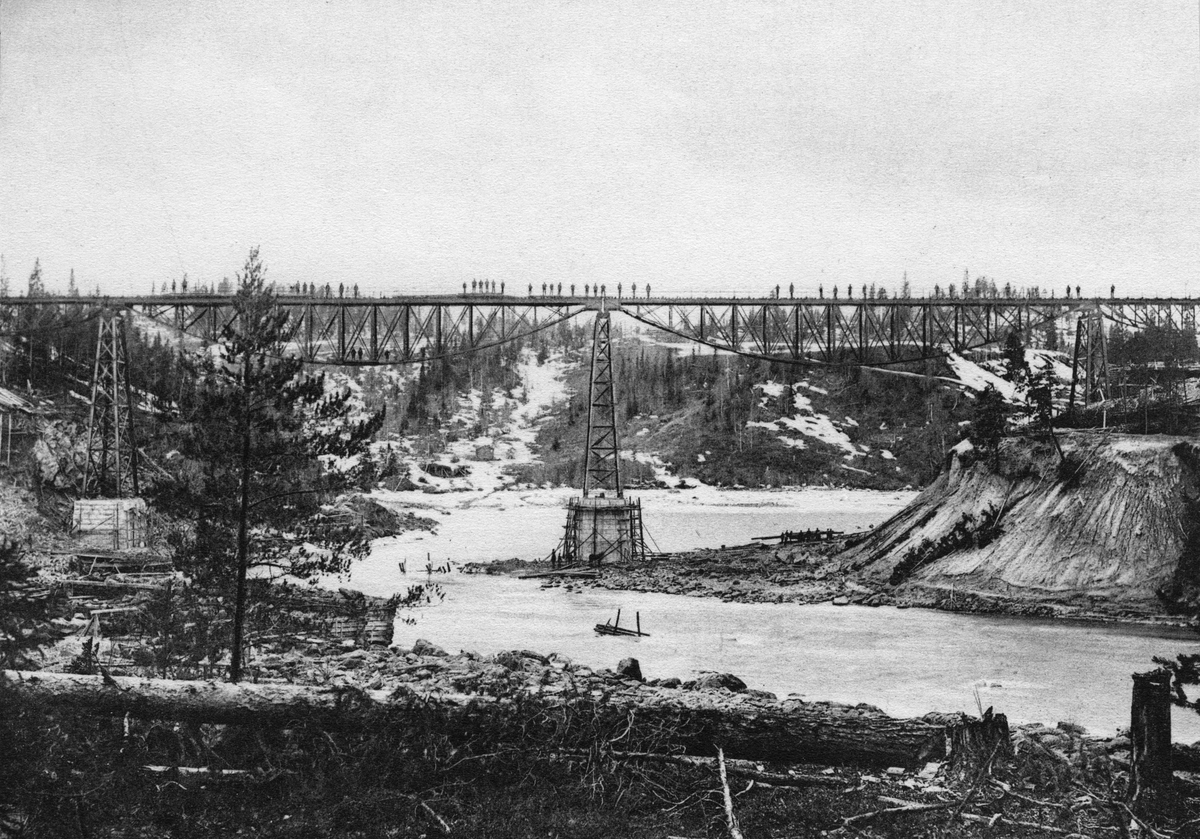 Bildtext: Järnvägsbron över Vindelälven. Bilden inkom 1935.