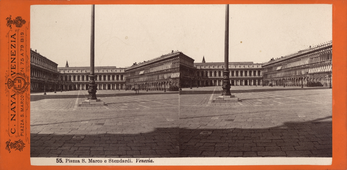 Stereobild av torg med pelare/ monument.