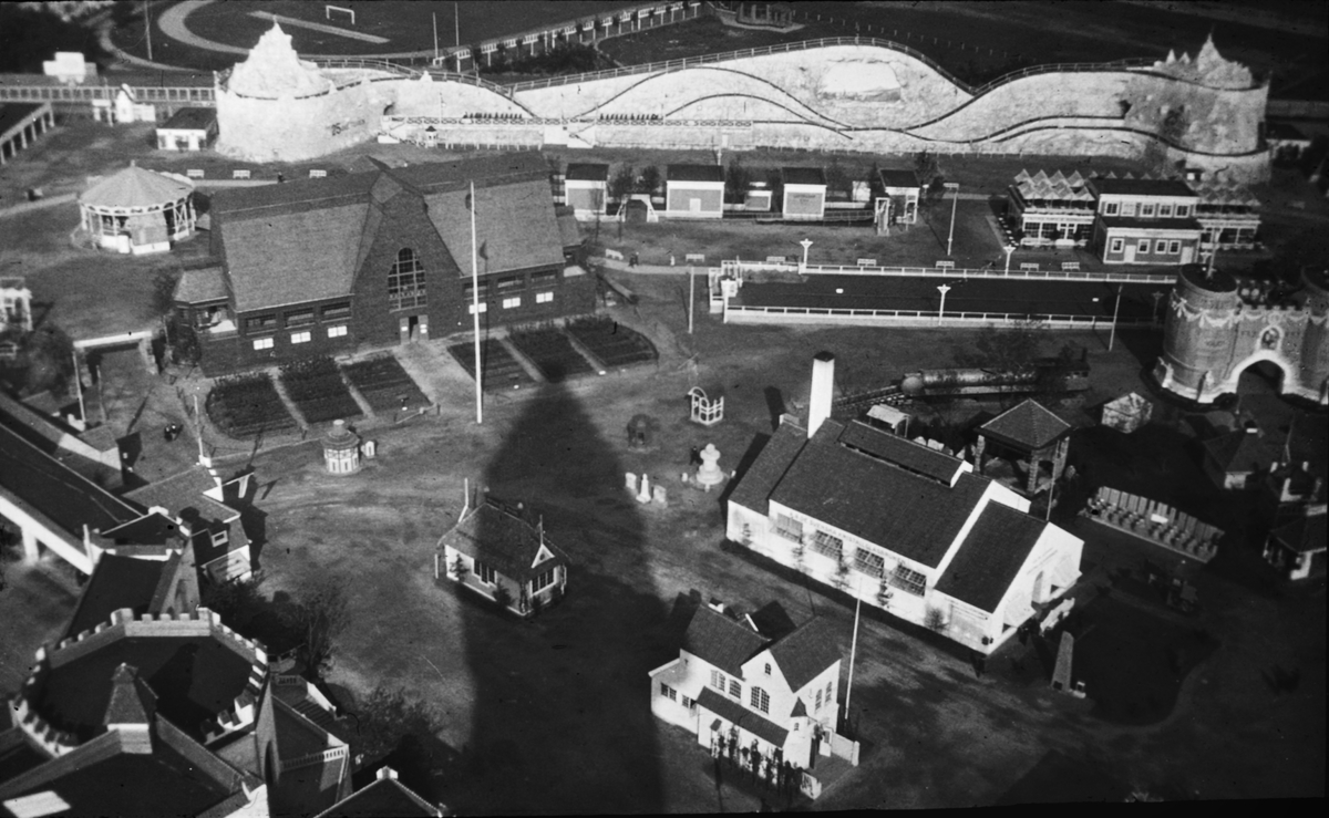 Skioptikonbild med motiv från Baltiska utställningen i Malmö 1914, konstindustri och hantverksutställning.