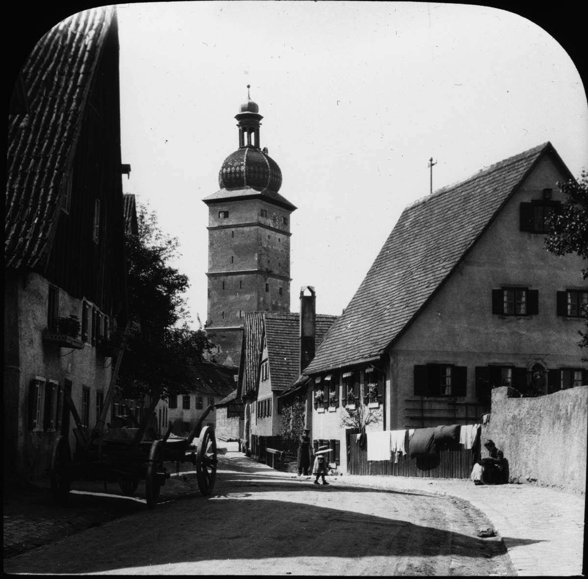 Skioptikonbild med motiv från Dinkelsbühl med stadsporten Segringer Tor i bakgrunden.