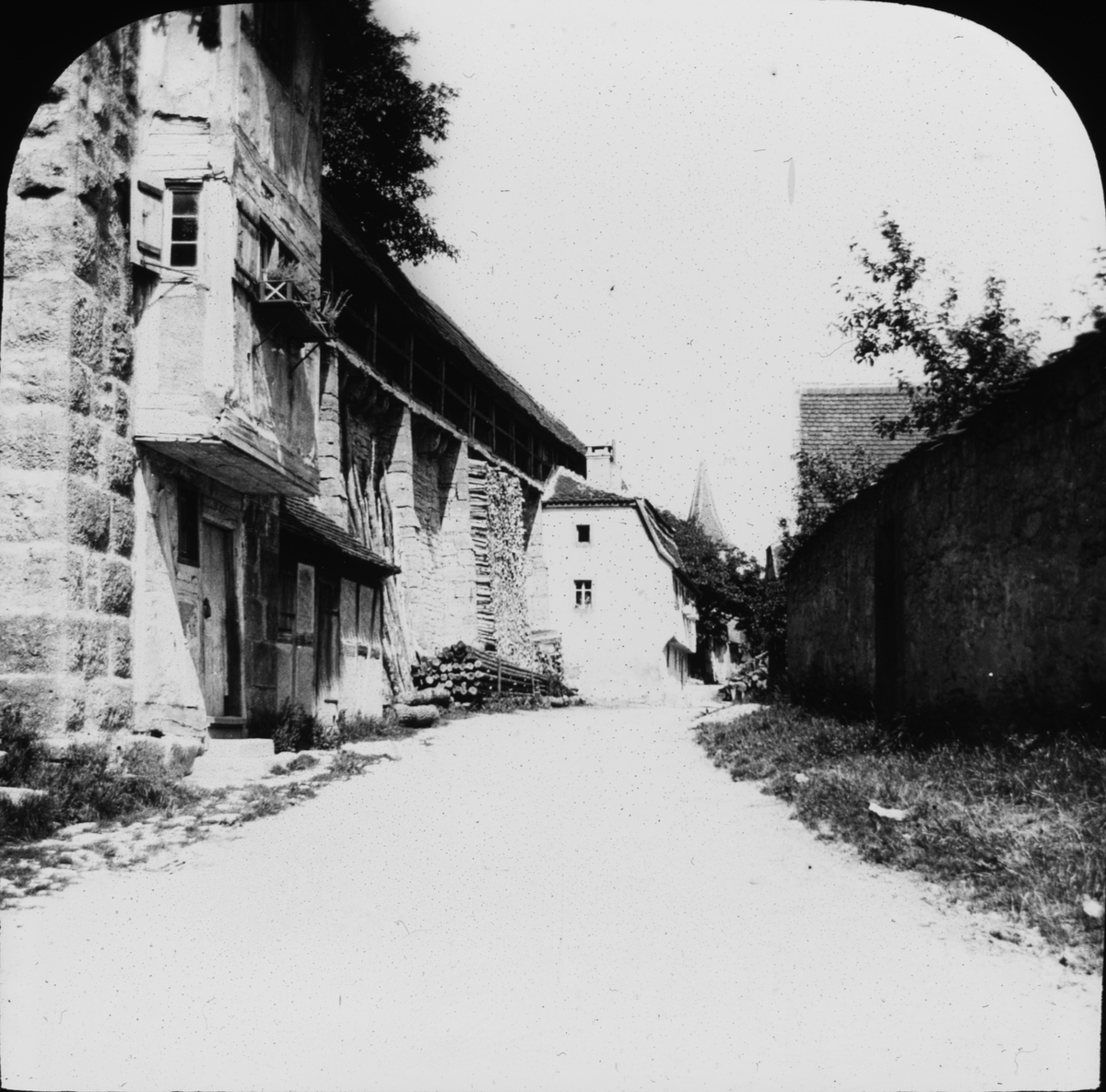 Skioptikonbild med motiv från gata i Rothenburg.