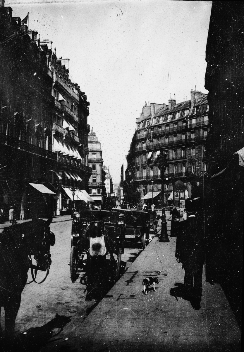 Skioptikonbild med motiv av gatan Aveny de l'Opera.