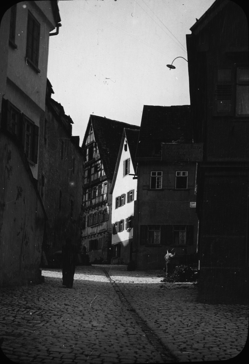 Skioptikonbild med motiv från gata i Tübingen.