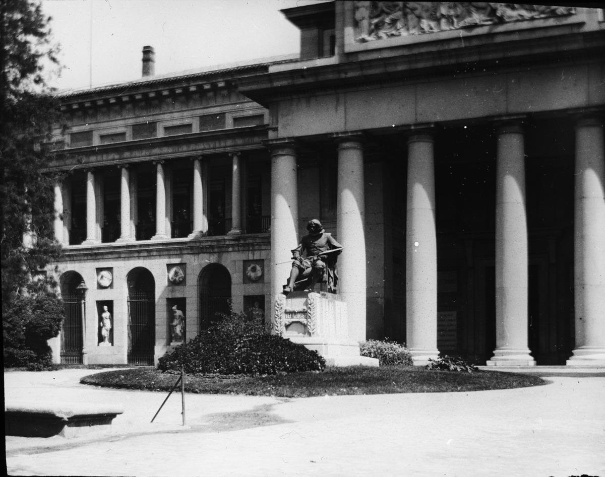 Bilden har förvarats i kartong märkt: Höstresan 1910. Madrid 9. N:2. Text på bild: "Pradomuseet ö Velasques Foden".