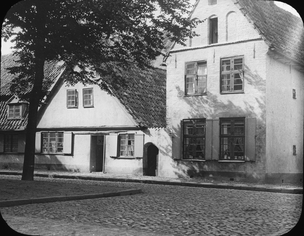 Skioptikonbild med motiv med motiv av hus i Rostock.