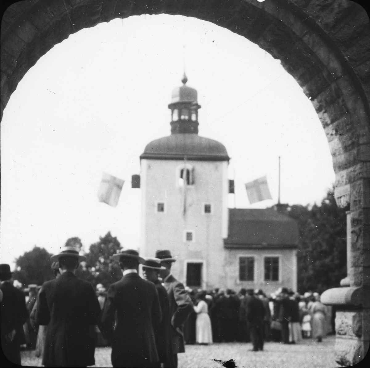 Skioptikonbild med motiv av sammankomst i Vadstena.