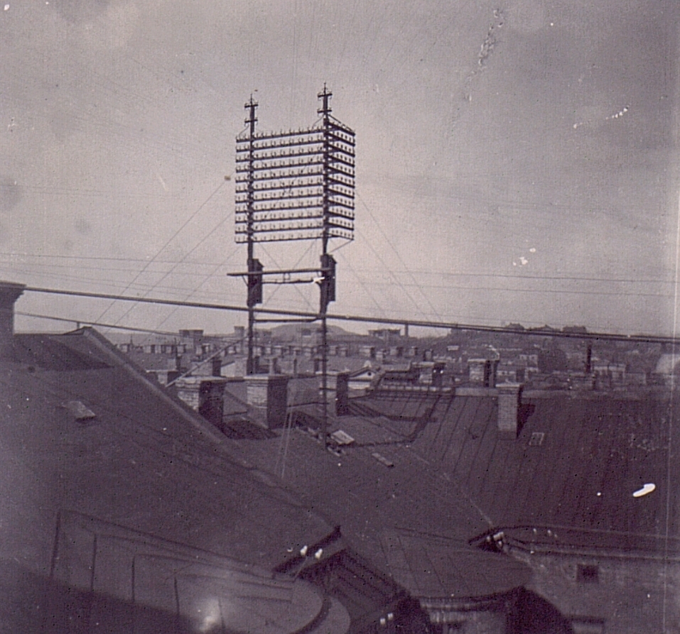 Malmö nät och stationer år 1890. Telefongalge monterad på tak.