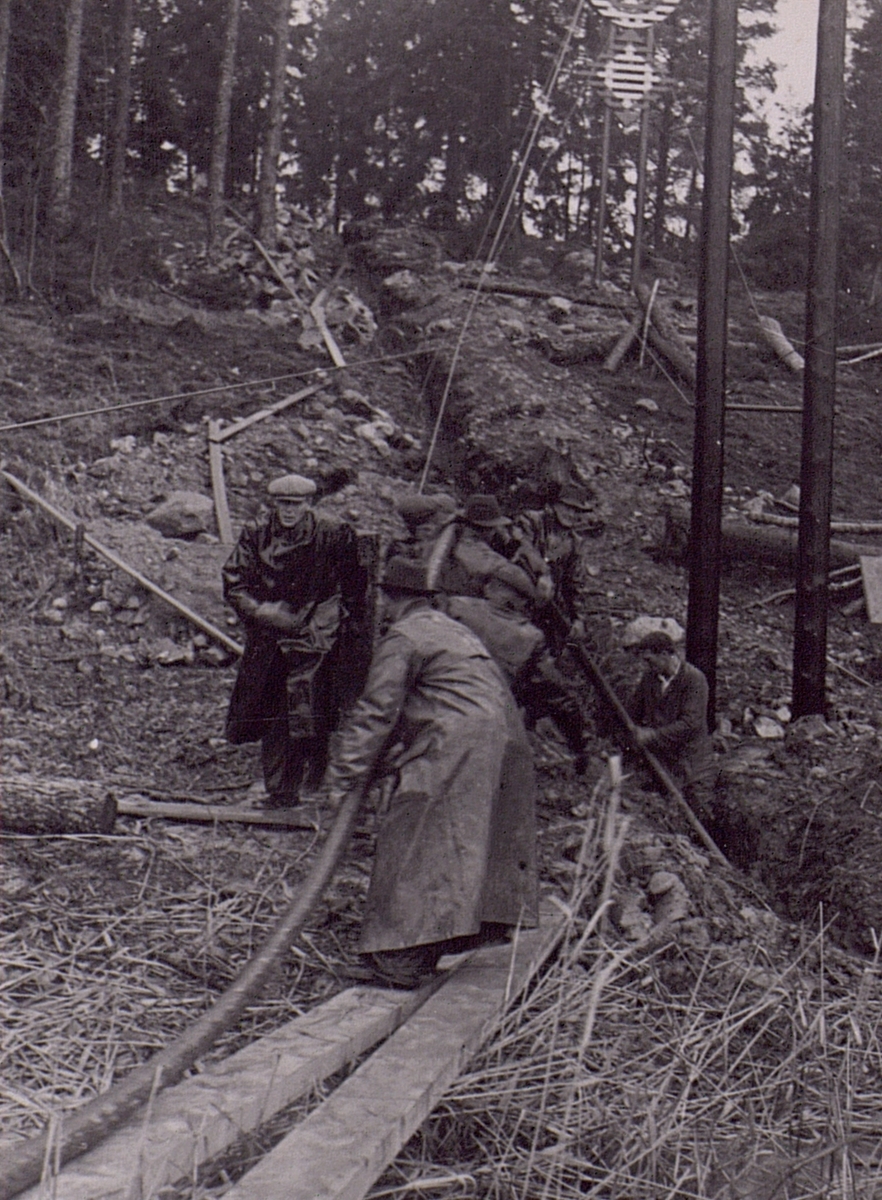 Sjökabel. Görveln. S-ändan drages iland på Foderholmen. 1949.