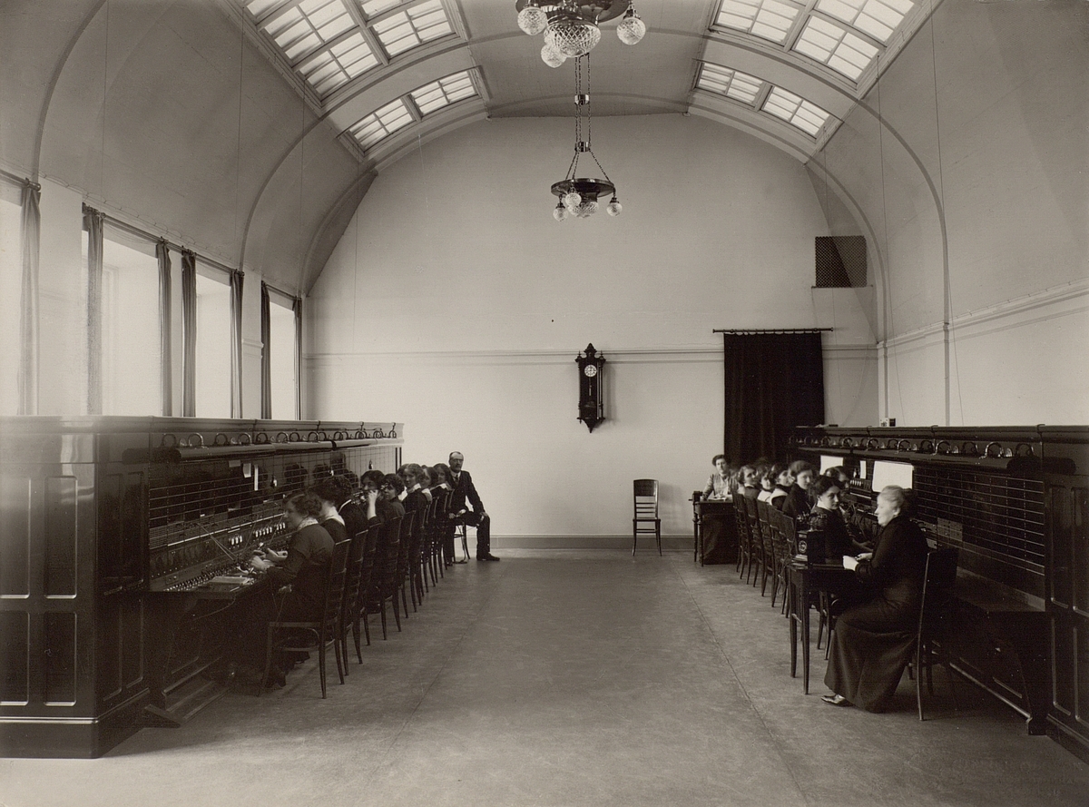 Östersunds telefonstation omkring år 1915. Interiör.