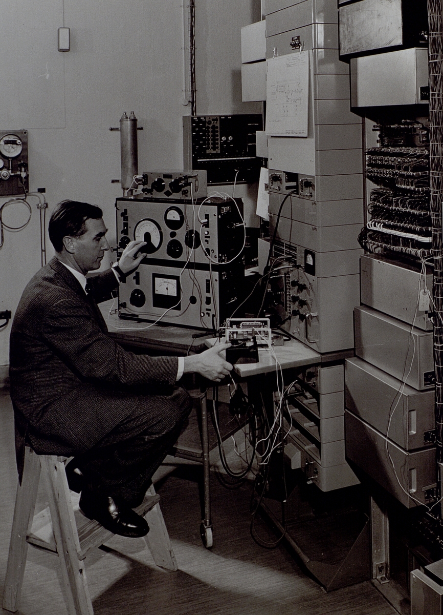 Ivar Friberg i källarplanet, Teleskolan. Överdragsstation.