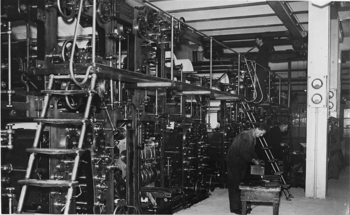 Interiör från Stockholms Tidningens- Stockholms Dagblads tryckeri.