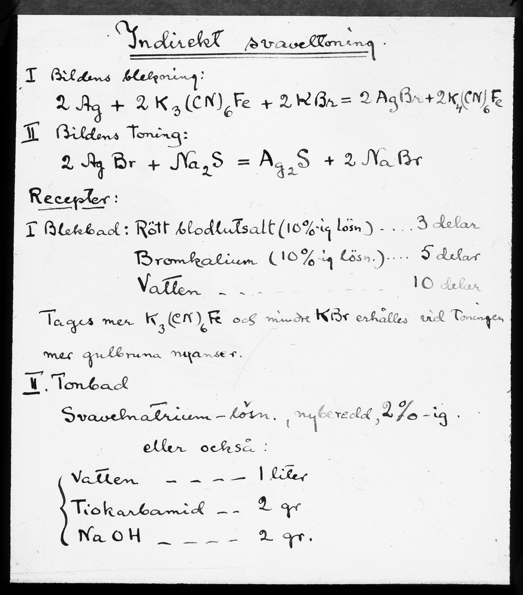 Skioptikonbild från Institutionen för fotografi vid Kungliga Tekniska Högskolan. Använd av professor Helmer Bäckström som föreläsningsmaterial. Bäckström var Sveriges första professor i fotografi vid Kungliga Tekniska Högskolan i Stockholm 1948-1958.